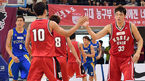 [OSEN=곽영래 기자] 7일 오후 서울 신촌 연세대체육관에서 열린 '2014 KB국민은행 대학농구리그 챔피언결정전' 3차전 경기, 3쿼터 고려대 이승현과 문성곤이 하이파이브를 하고 있다. 대학농구를 대표하는 최고의 라이벌팀들 답게