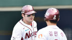 [OSEN=목동, 민경훈 기자] 7일 오후 서울 목동구장에서 열린 '2014 한국야쿠르트 세븐 프로야구' 넥센 히어로즈와 롯데 자이언츠 경기, 2회말 선두타자 넥센 박병호가 좌중월 솔로 홈런을 날린 후 홈에서 김민성과 하이파이브를 하