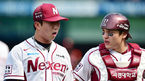 [OSEN=목동, 민경훈 기자] 7일 오후 서울 목동구장에서 열린 '2014 한국야쿠르트 세븐 프로야구' 넥센 히어로즈와 롯데 자이언츠 경기, 1회초를 마친 넥센 문성현이 덕아웃으로 향하며 박동원과 얘기를 나누고 있다. 이 날 경기에서