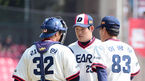 [OSEN=잠실, 최규한 기자] 7일 오후 서울 잠실야구장에서 '2014 한국야쿠르트 세븐 프로야구' 두산 베어스와 SK 와이번스의 경기가 열렸다. 2회초 SK 공격 무사 1, 2루 상황 두산 선발 정대현이 이광우 코치-김재환 포수와 대화를 나