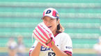 [OSEN=잠실, 최규한 기자] 7일 오후 서울 잠실야구장에서 '2014 한국야쿠르트 세븐 프로야구' 두산 베어스와 SK 와이번스의 경기가 열렸다. 시구자로 나선 프로골퍼 윤슬아가 공을 던지기 앞서 미소짓고 있다. 두산과 SK는 시즌 13번