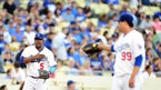 [OSEN=LA, 지형준 기자] 7일(이하 한국시간) 미국 로스엔젤레스 다저스타디움에서 열린 '2014 메이저리그' LA 다저스와 애리조나 다이아몬드백스의 경기,1회말 류현진이 투런홈런을 친 곤잘레스와 주먹을 마주치고 있다. LA 다저스
