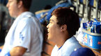 [OSEN=LA, 지형준 기자] 7일(이하 한국시간) 미국 로스엔젤레스 다저스타디움에서 열린 '2014 메이저리그' LA 다저스와 애리조나 다이아몬드백스의 경기,3회말 삼진으로 물러난 류현진이 더그아웃에서 환하게 웃고 있다. LA 다저스