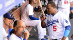 [OSEN=LA, 지형준 기자] 7일(이하 한국시간) 미국 로스엔젤레스 다저스타디움에서 열린 '2014 메이저리그' LA 다저스와 애리조나 다이아몬드백스의 경기,1회말 1사 2루 곤잘레스가 투런홈런을 치고 동료들의 환영을 받고있다. LA 다저