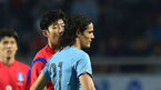 [OSEN=고양, 곽영래 기자] 8일 오후 경기도 고양시 고양종합운동장에서 '대한민국 vs 우루과이' 국가대표 평가전이 열렸다. 경기 후반 손흥민이 교체되어 그라운드를 나서는 카바니와 인사를 나누고 있다. 한국이 고양종합운동장