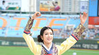 [OSEN=부산, 정송이 기자] 9일 오후 부산 사직구장에서 '2014 한국야쿠르트 세븐 프로야구' 롯데 자이언츠와 SK 와이번스의 경기가 열렸다. 롯데 치어리더 박기량이 힘찬 응원을 펼치고 있다. SK 와이번스는 좌완 에이스 김광현 대