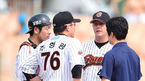 [OSEN=부산, 정송이 기자]9일 오후 부산 사직구장에서 '2014 한국야쿠르트 세븐 프로야구' 롯데 자이언츠와 SK 와이번스의 경기가 열렸다. 3회초 1사 1루 상황에서 주형광 코치가 마운드에 올라 옥스프링과 이야기를 나누고 있다. SK