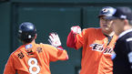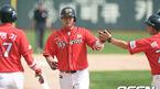 [OSEN=목동, 김경섭 기자] 9일 오후 서울 목동구장에서 열린 '2014 한국야쿠르트 프로야구 세븐 프로야구' 넥센 히어로즈와 한화 이글스의 경기, 1회초 1사 주자 3루 한화 김경언의 희생플라이에 홈을 밟은 정근우가 김태균과 기쁨