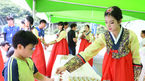 [OSEN=부산, 정송이 기자] 9일 오후 부산 사직구장에서 열린 '2014 한국야쿠르트 세븐 프로야구' 롯데 자이언츠와 SK 와이번스의 경기에 앞서 롯데 치어리더 박기량이 야구팬들에게 송편을 나눠주고 있다. SK 와이번스는 좌완 에이