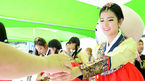 [OSEN=부산, 정송이 기자] 9일 오후 부산 사직구장에서 열린'2014 한국야쿠르트 세븐 프로야구' 롯데 자이언츠와 SK 와이번스의 경기에 앞서 롯데 치어리더들이 야구팬들에게 송편을 나눠주고 있다. SK 와이번스는 좌완 에이스 김광