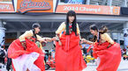 [OSEN=부산, 정송이 기자] 9일 오후 부산 사직구장에서 열린 '2014 한국야쿠르트 세븐 프로야구' 롯데 자이언츠와 SK 와이번스의 경기에 앞서 롯데 치어리더 박기량이 야구팬과 함께 기념촬영을 하고 있다. SK 와이번스는 좌완 에이