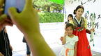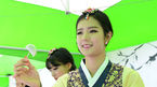 [OSEN=부산, 정송이 기자] 9일 오후 부산 사직구장에서 열린 '2014 한국야쿠르트 세븐 프로야구' 롯데 자이언츠와 SK 와이번스의 경기에 앞서 롯데 치어리더 박기량이 한복을 차려입고 송편을 먹고 있다. SK 와이번스는 좌완 에이스
