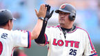 [OSEN=부산, 정송이 기자] 10일 오후 부산 사직구장에서 '2014 한국야쿠르트 세븐 프로야구' 롯데 자이언츠와 SK 와이번스의 경기가 열렸다. 7회말 1사 2루 김민하의 1타점 2루타에 홈을 밟은 2루주자 장성우가 덕아웃에서 김시진 감