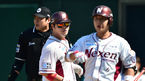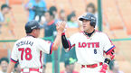 [OSEN=부산, 정송이 기자] 10일 오후 부산 사직구장에서 '2014 한국야쿠르트 세븐 프로야구' 롯데 자이언츠와 SK 와이번스의 경기가 열렸다. 1회말 2사 1루 1타점 3루타를 날린 전준우가 3루에서 모토니시 코치와 하이파이브를 나누고
