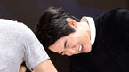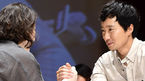 [OSEN=김경섭 기자] 11일 오후 서울 성북구 성신여자대학교 운정그린캠퍼스 대강당에서 열린 영화 '제보자' 쇼케이스에서 배우 박해일이 팬과 팔씨름 대결을 펼치고 있다. 영화 '제보자'는 시사프로그램 PD 윤민철이 전 세계적인