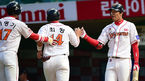 [OSEN=문학, 정송이 기자] 11일 오후 인천 문학구장에서 '2014 한국야쿠르트 세븐 프로야구' SK 와이번스와 SK 와이번스의 경기가 열렸다. 1회말 1사 1,2루 박정권의 적시타로 홈을 밟은 이명기와 최정이 덕아웃으로 향하며 한동민과