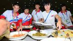 [OSEN=인천,박준형 기자] 12일 오후 인천 구월동 구월아시아드선수촌에서 열린 2014 인천아시안게임 개촌식 후 북한선수단이 식사를 준비하고 있다 이날 개촌식을 시작으로 다음달 7일까지 운영된다. 구월아시아드선수촌은 최대 1