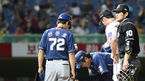 [OSEN=잠실, 최규한 기자] 13일 오후 서울 잠실야구장에서 '2014 한국야쿠르트 세븐 프로야구' LG 트윈스와 삼성 라이온즈의 경기가 열렸다. 8회초 삼성 공격 1사 주자없는 상황 LG 선발 리오단이 마운드를 내려오며 강상수 코치와 인