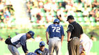 [OSEN=문학, 김경섭 기자] 13일 오후 인천 문학구장에서 열린 '2014 한국야쿠르트 세븐 프로야구 SK 와이번스와 NC 다이노스의 경기, 3회초 무사 주자 1,2루 NC 김태군의 내야 땅볼에 2루로 향하던 지석훈이 슬라이딩 뒤 고통을 호소하