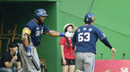 [OSEN=문학, 김경섭 기자] 13일 오후 인천 문학구장에서 열린 '2014 한국야쿠르트 세븐 프로야구 SK 와이번스와 NC 다이노스의 경기, 3회초 2사 주자 만루, SK 여건욱의 폭투를 틈 타 3루주자 권희동이 홈을 밟고 테임즈와 기쁨을 나누