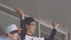 [OSEN=대전, 김영민 기자] 14일 오후 대전야구장에서 열린 '2014 한국야쿠르트 세븐 프로야구' 한화 이글스와 KIA 타이거즈의 경기, 승리기원 시구를 마친 배우 조인성이 이광수와 함께 응원을 펼치고 있다. 한화와 KIA가 인천 아시안