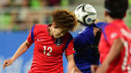 [OSEN=인천, 백승철 기자] 14일 오후 인천 남동 럭비경기장에서 열린 2014 인천 아시안게임 여자 축구 A조 1차전 한국과 태국의 경기 전반 정설빈이 공중볼 다툼을 하고 있다. 윤덕여 감독은 지난 13일 열린 기자회견에서 "힘든 과정