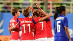 [OSEN=인천, 백승철 기자] 14일 오후 인천 남동 럭비경기장에서 열린 2014 인천 아시안게임 여자 축구 A조 1차전 한국과 태국의 경기 전반 정설빈이 골을 넣고 동료들과 기쁨을 나누고 있다. 윤덕여 감독은 지난 13일 열린 기자회견