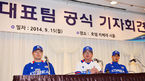 [OSEN=민경훈 기자] 15일 오후 서울 리베라호텔 15층 로즈홀에서 AG 야구대표팀 류중일 감독과 박병호 김광현이 기자회견을 가졌다. 9월 15일(월) 오후 4시 서울 리베라호텔(청담동)에서 선수단 소집을 시작으로 첫 공식 일정에 들