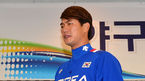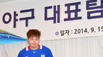 [OSEN=민경훈 기자] 15일 오후 서울 리베라호텔 15층 로즈홀에서 AG 야구대표팀 류중일 감독과 박병호 김광현이 기자회견을 가졌다. 김광현이 모자를 쓰고 있다. 9월 15일(월) 오후 4시 서울 리베라호텔(청담동)에서 선수단 소집을