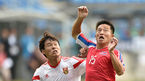 [OSEN=인천, 이대선 기자] 15일 오후 인천축구전용경기장에서 2014 인천 아시안게임 남자 축구 조별예선 F조 1차전 북한과 중국의 경기가 열렸다. 전반 양팀 선수들이 볼다툼을 하고 있다. 수비수 강국철과 골키퍼 리명국을 와일드