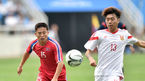 [OSEN=인천, 이대선 기자] 15일 오후 인천축구전용경기장에서 2014 인천 아시안게임 남자 축구 조별예선 F조 1차전 북한과 중국의 경기가 열렸다. 전반 북한 서현욱이 슛을 시도하고 있다. 수비수 강국철과 골키퍼 리명국을 와일드