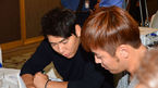 [OSEN=민경훈 기자] 15일 오후 서울 리베라호텔 15층 로즈홀에서 AG 야구대표팀 류중일 감독과 박병호 김광현이 기자회견을 가졌다. 기자회견 후 열린 AG 야구대표팀 소청교육에서 강정호와 강민호가 교육자료를 보며 얘기를 나누