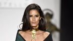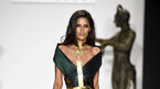 [OSEN=사진팀] 11일(현지시간) 미국 뉴욕 링컨센터에서 진행된 ‘아트 하트 패션쇼’에서 디자이너 마이클 코스텔로의 의상을 입은 모델 제슬린 곤잘레스가 런웨이에서 캣워크를 하고 있다. /photo@osen.co.kr ⓒAFPBBNews = News1