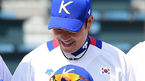 [OSEN=잠실, 민경훈 기자] 16일 오후 서울 잠실야구장에서 열린 AG 야구 대표팀 훈련, 포토타임때 강민호가 환하게 웃고 있다. 지난 15일(월) 오후 4시 서울 리베라호텔(청담동)에서 선수단 소집을 시작으로 첫 공식 일정에 들어가