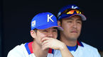 [OSEN=잠실, 민경훈 기자] 16일 오후 서울 잠실야구장에서 열린 AG 야구 대표팀 훈련 및 포토타임서 오재원과 강민호가 생각에 잠겨있다. 지난 15일(월) 오후 4시 서울 리베라호텔(청담동)에서 선수단 소집을 시작으로 첫 공식 일정