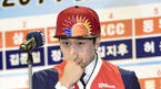 [OSEN=잠실학생체, 김경섭 기자] 17일 오전 서울 잠실학생체육관에서 '2014 KBL(프로농구연맹) 국내신인선수 드래프트가 열렸다. 연세대 김기윤이 1라운드 KGC의 지명을 받고 소감을 발표하던 중, 어머니를 생각하며 눈물 흘리고 있
