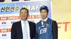 [OSEN=잠실학생체, 김경섭 기자] 17일 오전 서울 잠실학생체육관에서 '2014 KBL(프로농구연맹) 국내신인선수 드래프트가 열렸다. 한양대 정효근이 1라운드 3순위로 전자랜드에 지명되어 기념촬영을 하고 있다. 이번 '2014 KBL 국내신