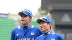 [OSEN=잠실, 이대선 기자] 17일 오후 서울 잠실야구장에서 2014 인천아시안게임 야구 대표팀 훈련이 진행됐다. 스트레칭 훈련을 마친 이태양과 이재학이 웃으며 더그아웃으로 가고 있다. 지난 15일(월) 오후 4시 서울 리베라호텔(청