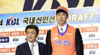 [OSEN=잠실학생체, 김경섭 기자] 17일 오전 서울 잠실학생체육관에서 '2014 KBL(프로농구연맹) 국내신인선수 드래프트가 열렸다. 연세대 김준일이 1라운드 2순위로 삼성 썬더스에 지명되어 기념사진을 찍고 있다. 이번 '2014 KBL 국내