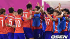 [OSEN=안산, 백승철 기자] 17일 오후 안산와스타디움에서 열린 2014 인천 아시안게임 남자 축구 A조 조별리그 2차전 한국과 사우디아라비아의 경기 종료 후 선수들이 승리의 기쁨을 나누고 있다. 한국이 강호 사우디 아라비아를 꺾