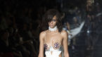 [OSEN=사진팀] 13일(현지시간) 영국 런던에서 열린 2015 S/S 런던 패션위크 패션쇼 사이몬 로샤의 한 모델이 섹시한 자태를 뽐내며 캣워킹을 선보이고 있다. /photo@osen.co.kr ⓒAFPBBNews = News1