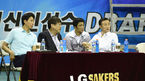 [OSEN=잠실학생체, 김경섭 기자] 17일 오전 서울 잠실학생체육관에서 '2014 KBL(프로농구연맹) 국내신인선수 트라이아웃(실기테스트)' A팀과 C팀의 경기가 열렸다. 창원 LG 세이커스 김진 감독과 관계자들이 경기를 지켜 보고 있다.