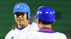 [OSEN=잠실, 최규한 기자] 18일 오후 서울 잠실야구장에서 2014 인천아시안게임 야구대표팀과 LG 트윈스의 연습경기가 열렸다. 6회말 대표팀 공격 2사 1, 3루 상황 이재원이 1타점 적시타를 날리고 윤영환 코치와 인사를 나누고 있다.
