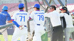 [OSEN=잠실, 최규한 기자] 18일 오후 서울 잠실야구장에서 열리는 2014 인천아시안게임 야구대표팀과 LG 트윈스의 연습경기를 앞두고, 야구장을 찾은 전 LG 트윈스 김기태 감독이 LG 양상문 감독, 조계현-이종두 코치와 함께 선수들