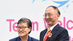 [OSEN=인천, 이대선 기자] 18일 오전 구월아시아드선수촌 국기광장에서 제17회 인천아시아경기대회에 참가하는 각국 선수단의 선수촌 입촌을 환영하는 입촌식이 진행됐다. 이에리사 선수촌장이 리우펑 중국 단장과 기념촬영을