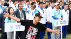 [OSEN=인천, 이대선 기자] 18일 오전 구월아시아드선수촌 국기광장에서 제17회 인천아시아경기대회에 참가하는 각국 선수단의 선수촌 입촌을 환영하는 입촌식이 진행됐다. 중국 선수단이 기념촬영을 하고 있다. 이에리사 선수촌