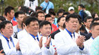 [OSEN=인천, 이대선 기자] 18일 오전 구월아시아드선수촌 국기광장에서 제17회 인천아시아경기대회에 참가하는 각국 선수단의 선수촌 입촌을 환영하는 입촌식이 진행됐다. 입촌식 행사에 참석한 북한 선수단이 박수를 치고 있다