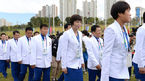 [OSEN=인천, 이대선 기자] 18일 오전 구월아시아드선수촌 국기광장에서 제17회 인천아시아경기대회에 참가하는 각국 선수단의 선수촌 입촌을 환영하는 입촌식이 진행됐다. 입촌식에 참석한 북한 선수단이 퍼레이드를 진행하고