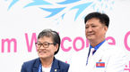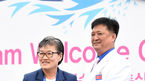 [OSEN=인천, 이대선 기자] 18일 오전 구월아시아드선수촌 국기광장에서 제17회 인천아시아경기대회에 참가하는 각국 선수단의 선수촌 입촌을 환영하는 입촌식이 진행됐다. 이에리사 선수촌장이 북한 김병식 단장과 기념촬영을