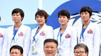 [OSEN=인천, 이대선 기자] 18일 오전 구월아시아드선수촌 국기광장에서 제17회 인천아시아경기대회에 참가하는 각국 선수단의 선수촌 입촌을 환영하는 입촌식이 진행됐다. 북한 선수단이 기념촬영을 하고 있다. 이에리사 선수촌